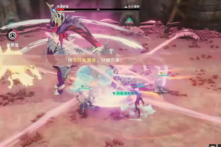 縁に当たったプレイヤーは夢霊を屏障の裂け目まで誘導し、他のプレイヤーはサークル内に一緒に立って減速効果に耐えてください。