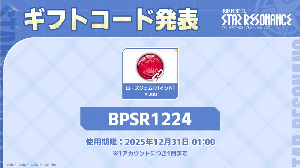 ブループロトコルスターレゾナンス(BLUE PROTOCOL:Star Resonance・スタレゾ・星痕共鸣)、日本サーバーで入力可能なギフトコード(またはシリアルコード)をまとめています。