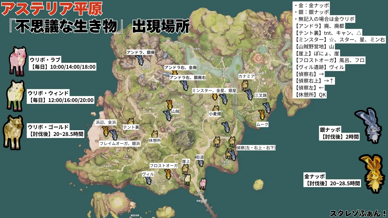 【スターレゾナンス】不思議な生き物(金ウリボ・金ナッポ・銀ナッポ)の情報まとめ【出現場所】