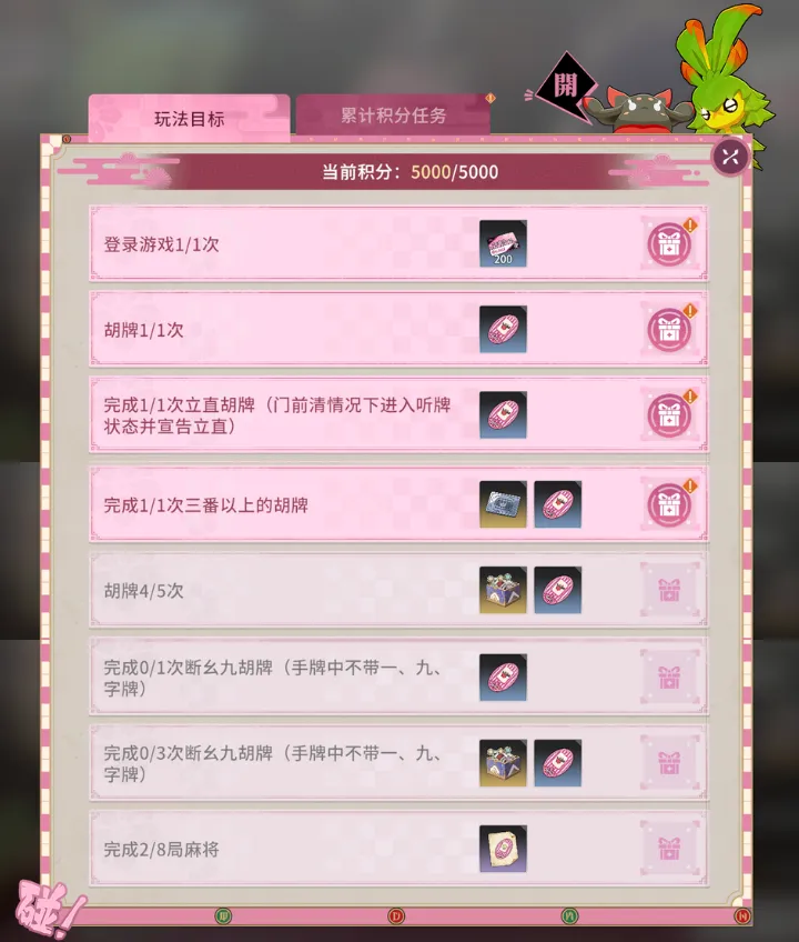 麻雀イベント「雀運千結・嶺上開花」でのポイント獲得には、日・週獲得制限があります。