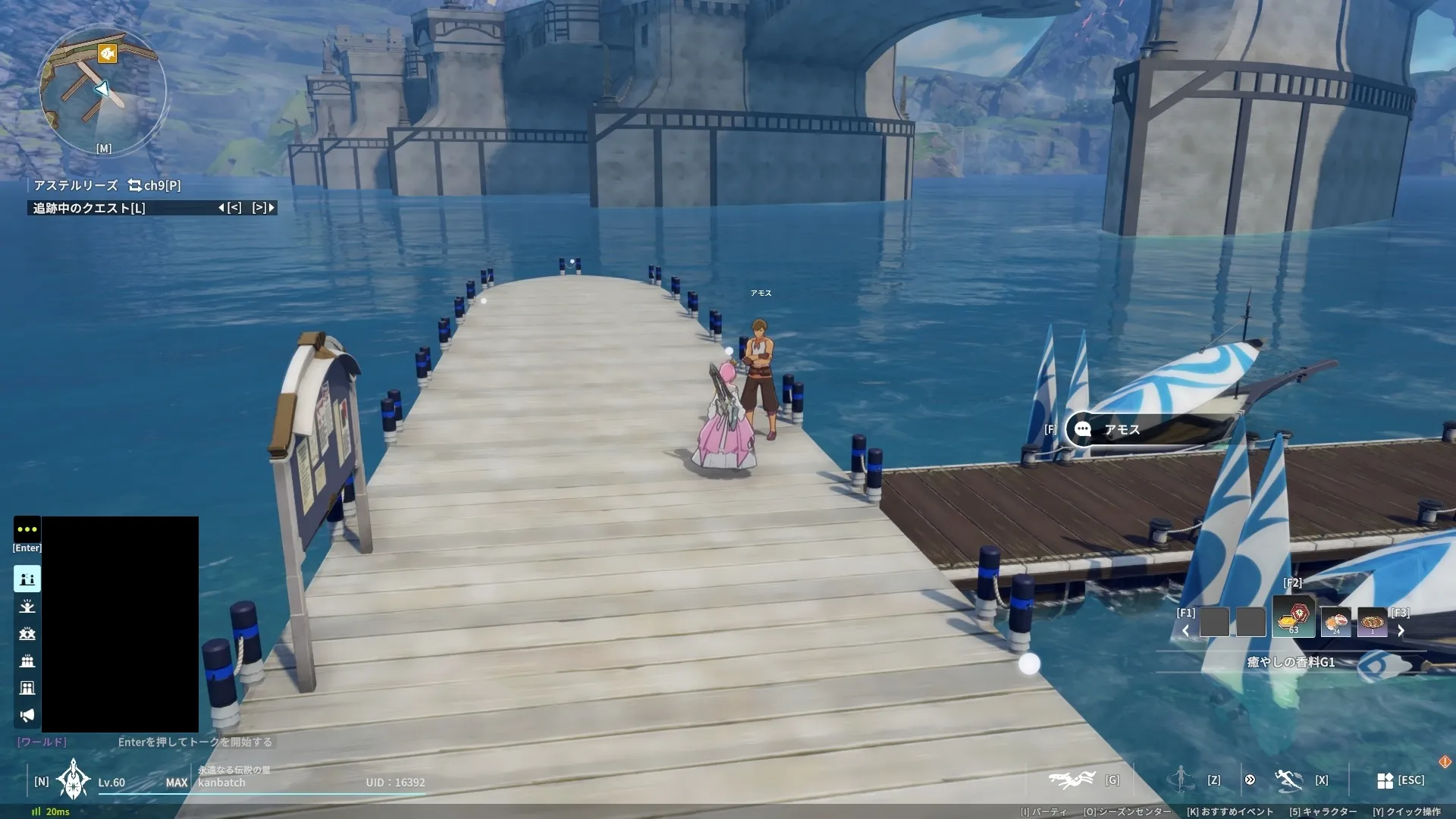 ナイトライト納品隠しクエストの場所は、アステルリーズのビーチにある釣りの桟橋にいるNPCキャラクター「アモス」に話しかけると発生します。