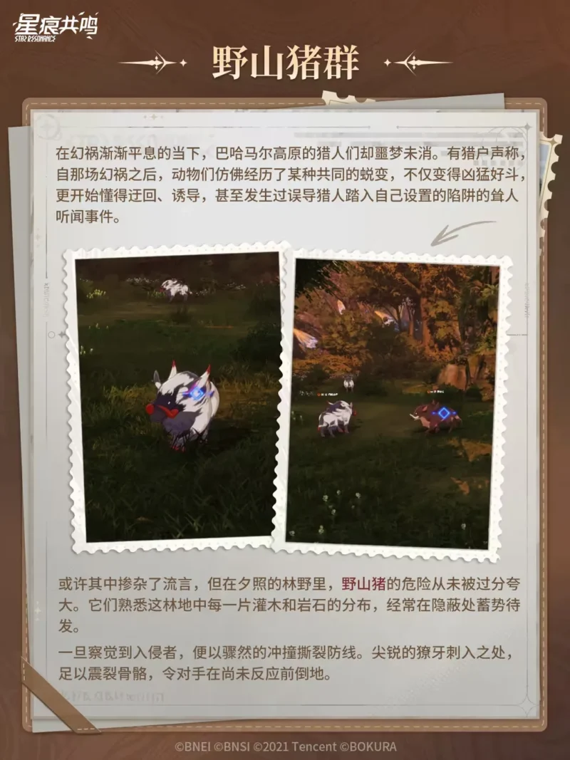 しかし 夕照の林野 において、野山猪の危険性が過小評価されたことは一度もない。彼らは森の灌木や岩の配置を熟知しており、よく隠れて待ち伏せしている。