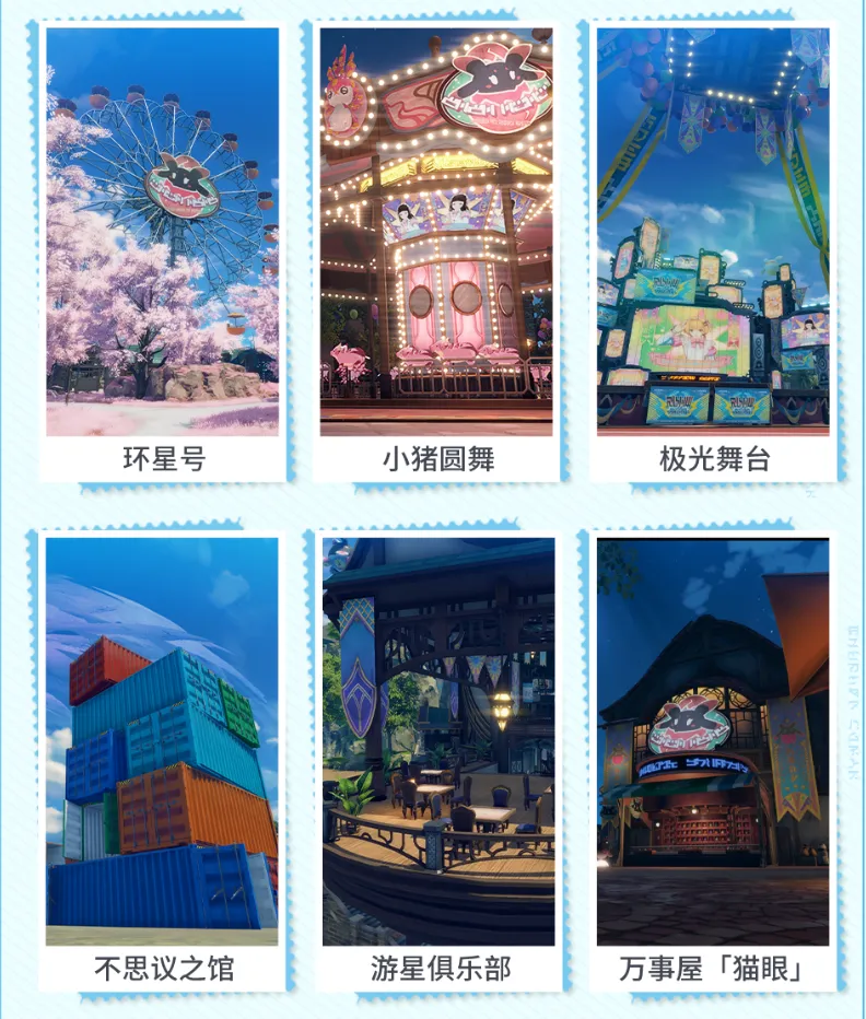 遊園地やアミューズメントパークのような施設で、プレイヤー同士で撮影する場所やミニゲームなども遊べるエリアです。