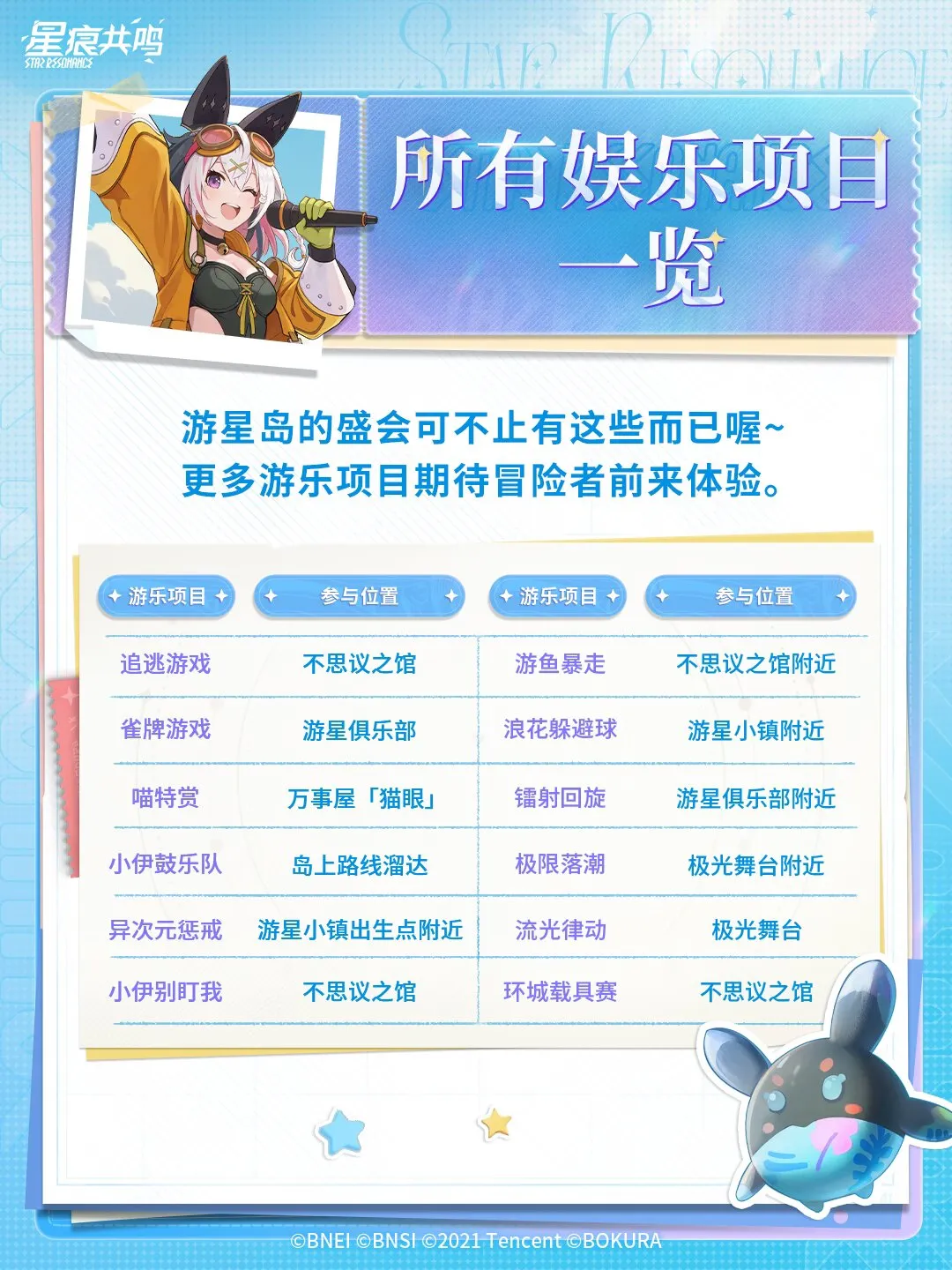 島内のさまざまなミニゲームに参加したり、カーニバルページの 「遊星手帳」 にある