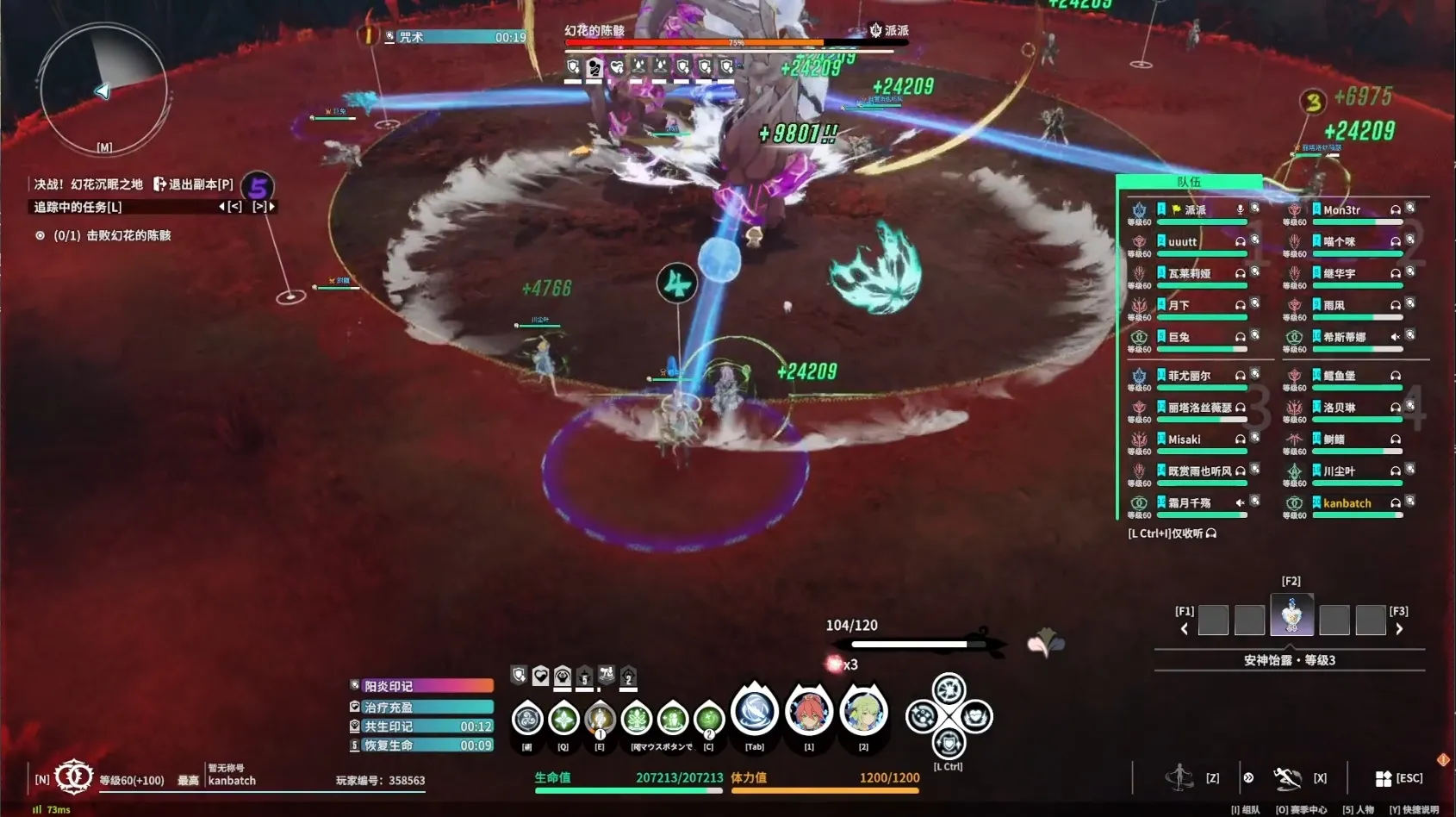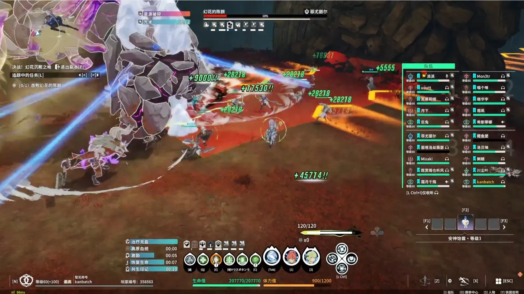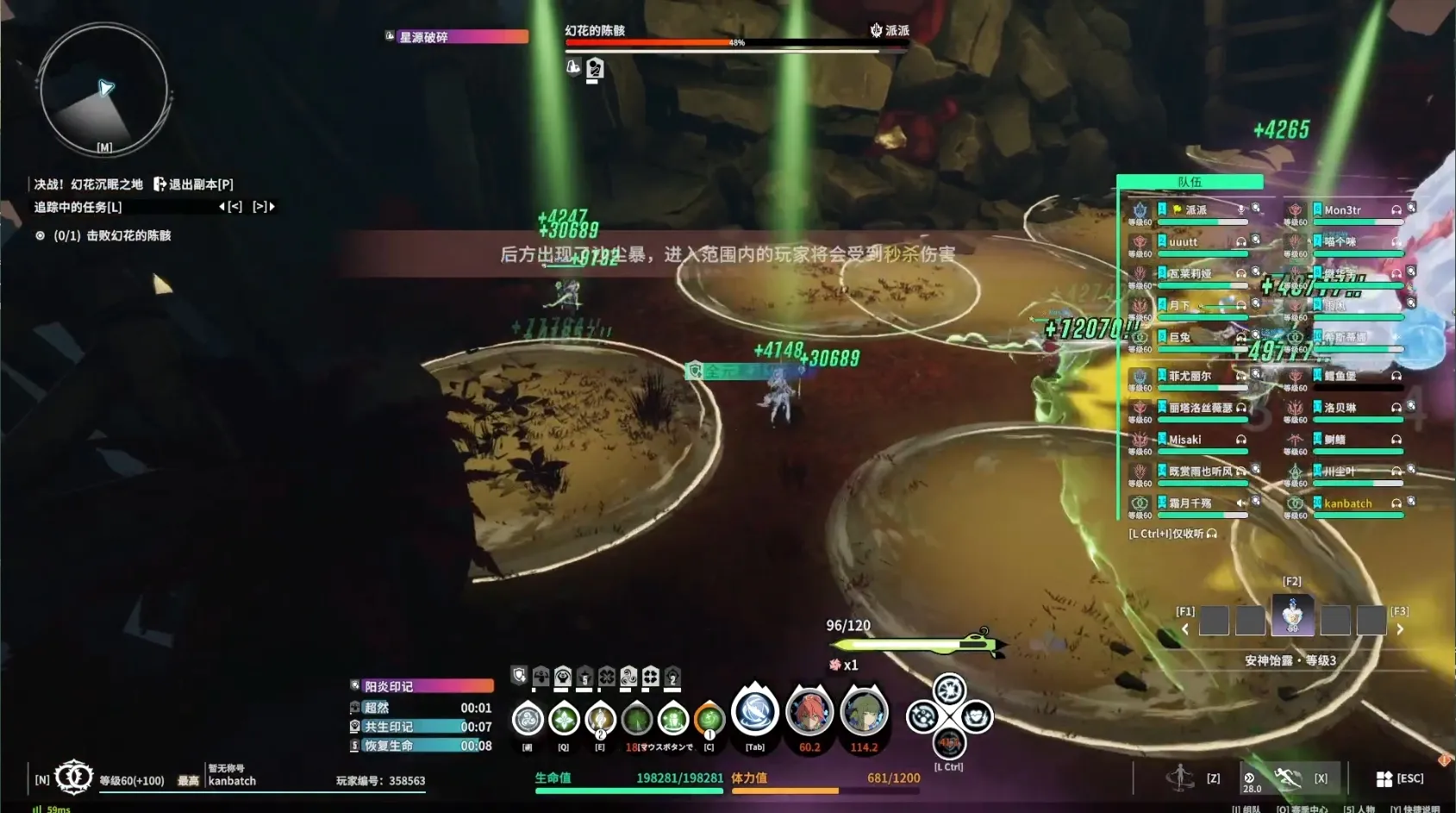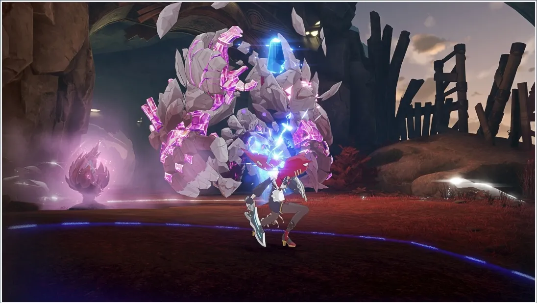 そのルート上には変異した幻花晶が大量に存在し、 石骸がそれらに近づくと爆発して、プレイヤーに大ダメージとノックアップ効果を与えます。一部のプレイヤーは先行して沿道の幻花晶を片付け、残りは遺跡の装置を持って引き続き石骸を抑圧しながら追尾して先へ進もう。
