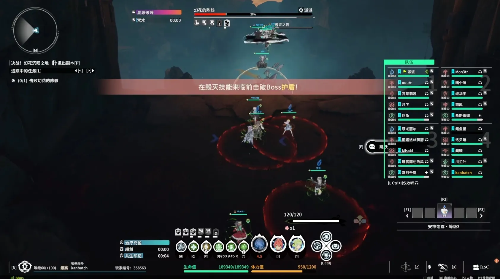すべての装置でダメージ分担に成功すると、幻花の残骸を虚弱状態にできる。少なくとも3名のプレイヤーで分担に参加する。