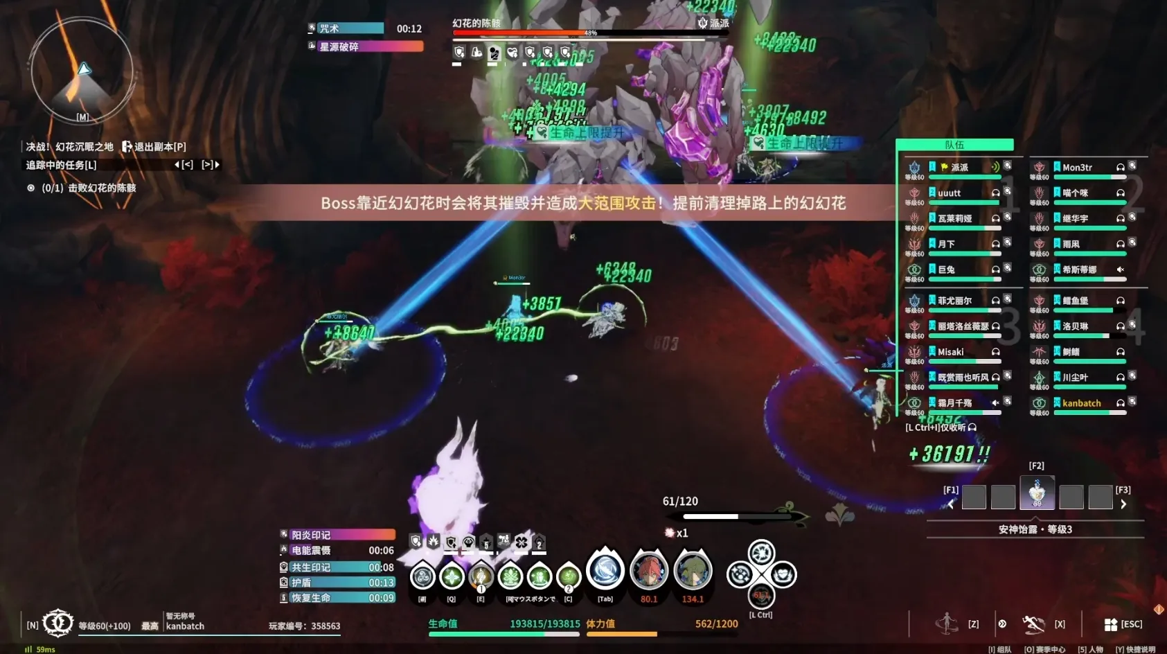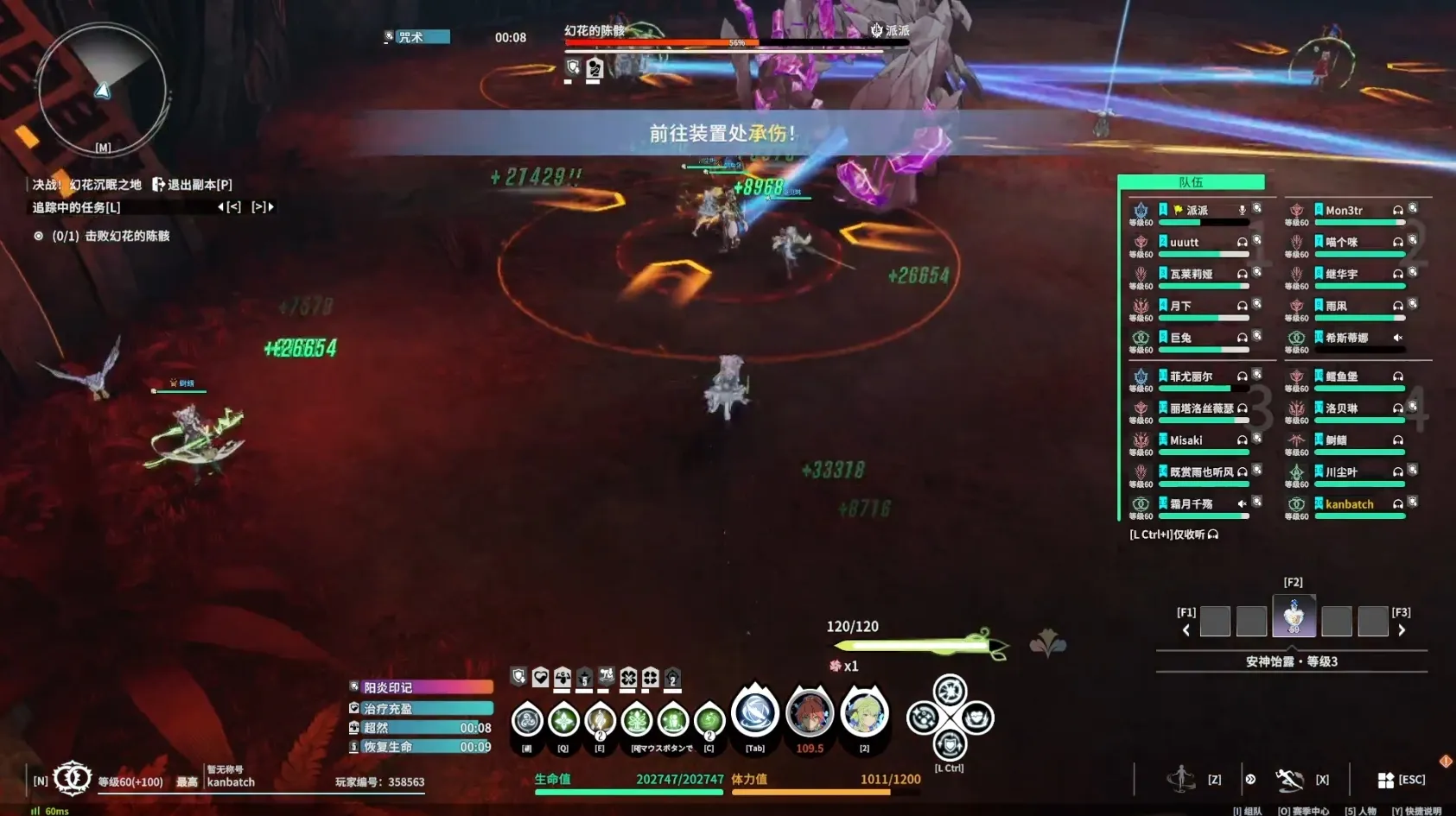 道中には幻花晶があり、ボスの中央ラインを越えると爆発して付近のプレイヤーをノックバックします。