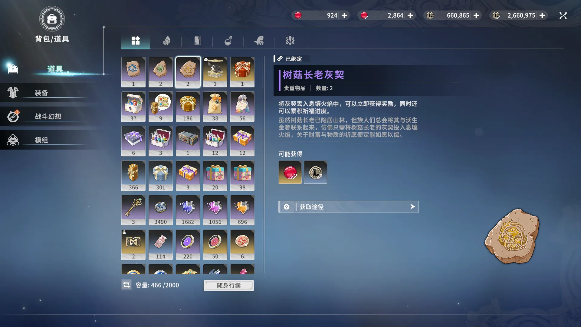 指定アイテムを納品して「祖霊灰契」や各種報酬を入手できます。