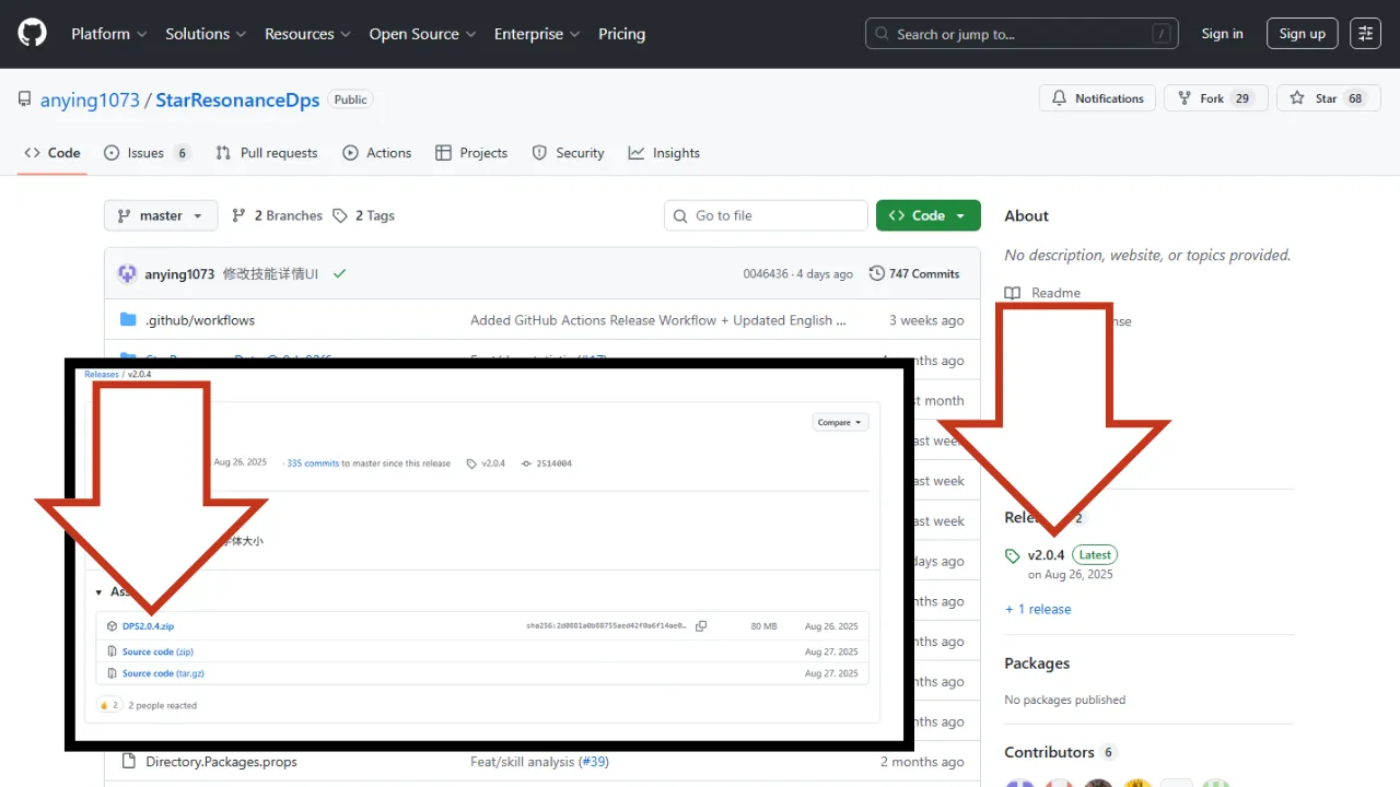 まずは、GitHubで公開しているStarResonanceDamageCounterをダウンロードしましょう。