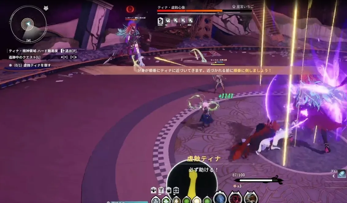 分身のティナが中央のティナに近づいてくるので、到着する前に倒しましょう。